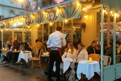 Garda Republik Perancis mengawal kendaraan Presiden Perancis Francois Hollande dalam perjalanan menghadiri upacara peringatan 70 tahun kemenangan atas Nazi Jerman dalam Perang Dunia II di Arc de Triomphe, Paris, Perancis, Jumat (8/5). ANTARA FOTO/REUTERS/Loic Venance.