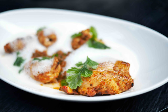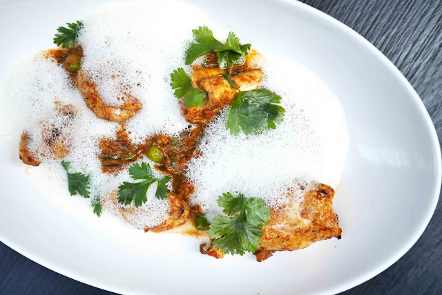 Tikka marsala spiced quinoa, coriander, yogurt emulsion.