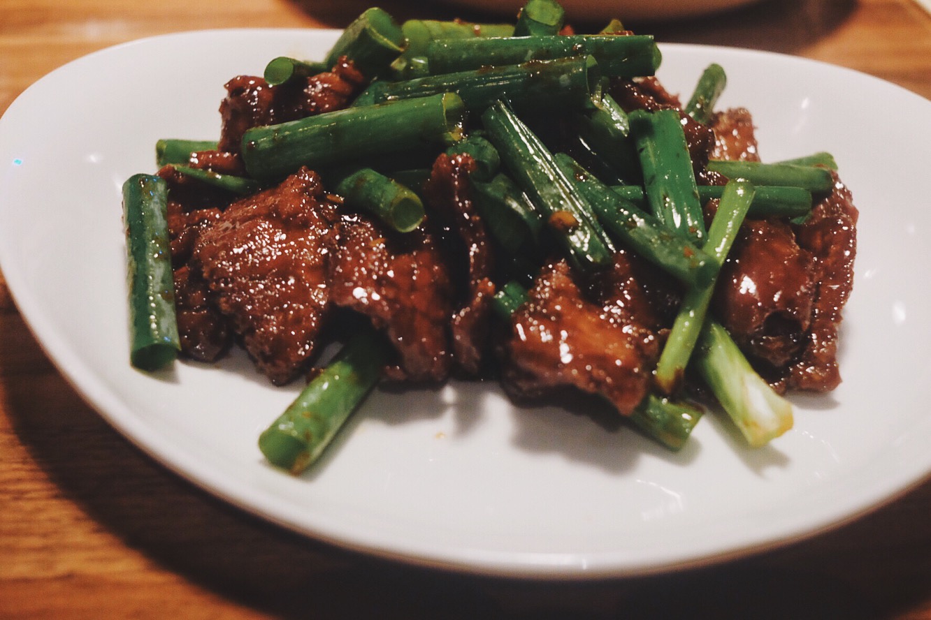 Traditional recipe from the Mongolian region of China is prepared with thin slices of caramelized beef in a very balanced sauce and tossed with scallions.