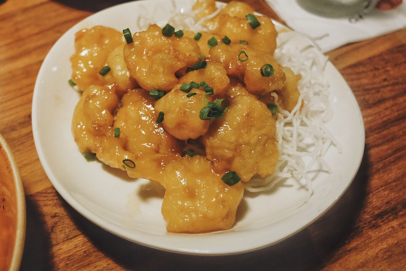 Dikatakan bahwa ini adalah favorit di antara pelanggan di PF Chang. Saya melihat hampir semua meja memesan yang satu ini jadi kami mencobanya. Udang sempurna ditutupi saus pedas khusus mereka. Renyah dengan cukup ketebalan adonan. Sempurna.