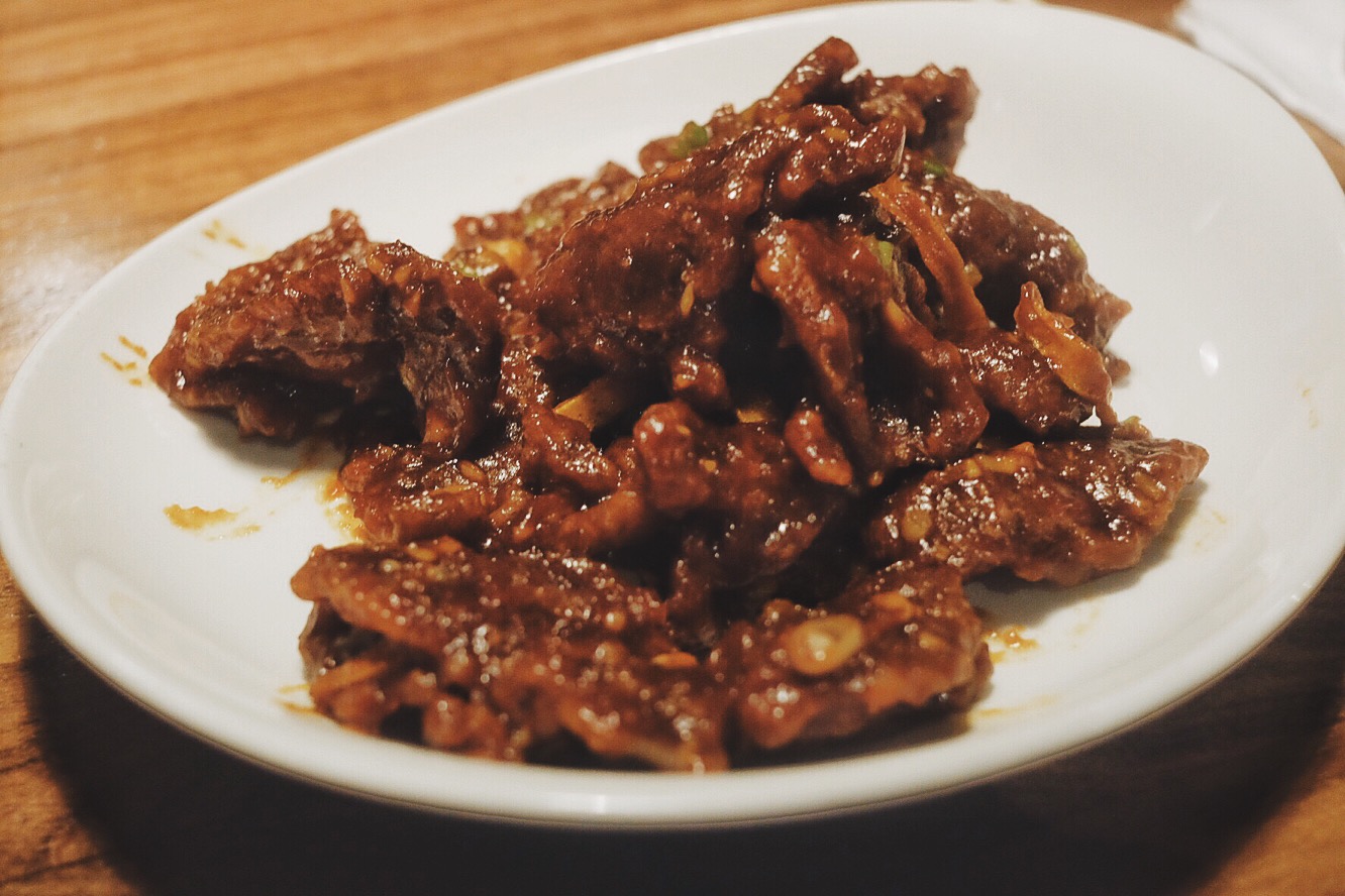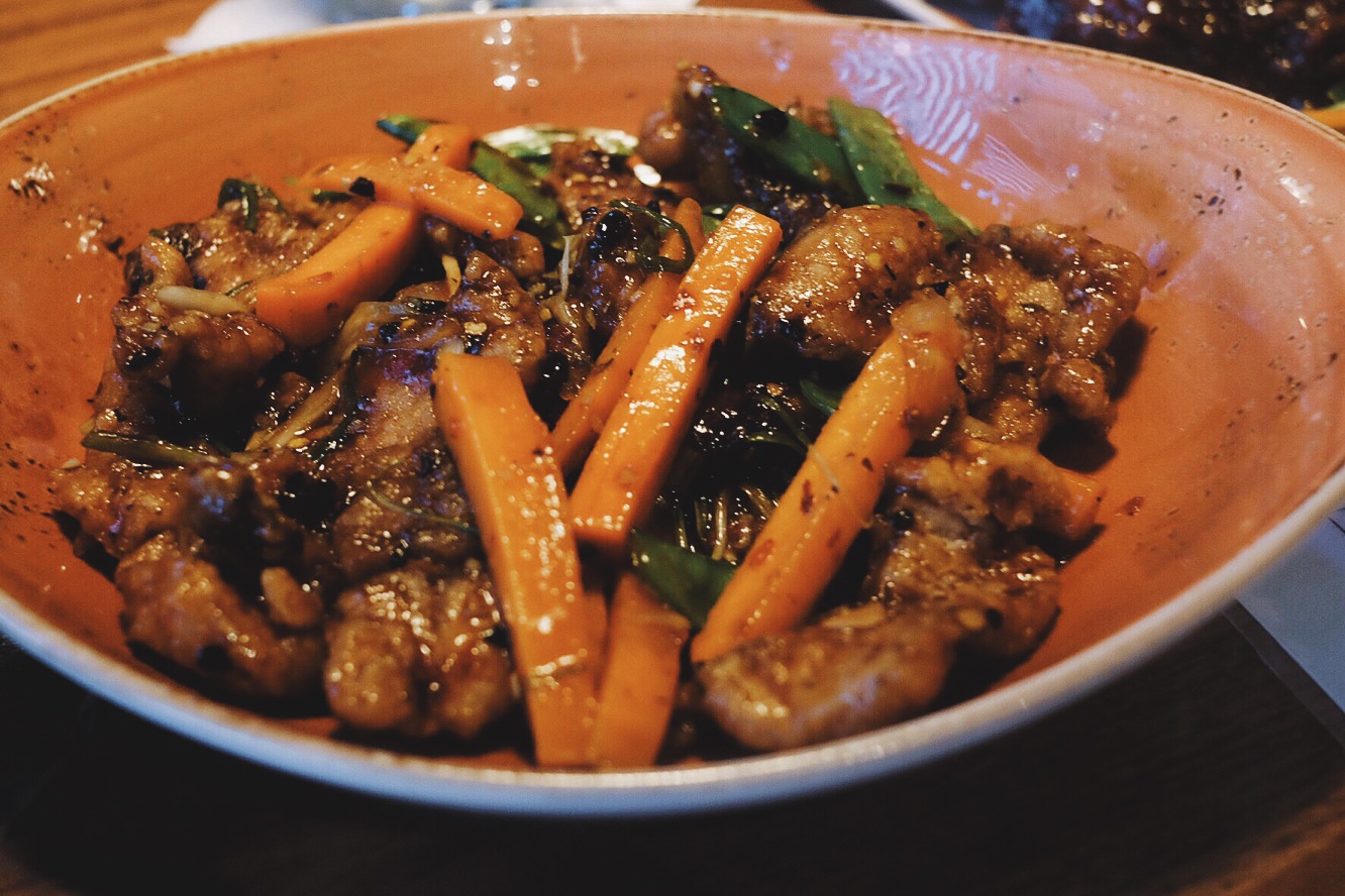 Ini, saya suka. Daging sapi tidak diiris setipis kulit jeruk daging sapi jadi aku masih bisa merasakan kelembutan, dan rasa itu hanya tepat. Karamel dengan daun bawang segar membuatnya terasa begitu baik.