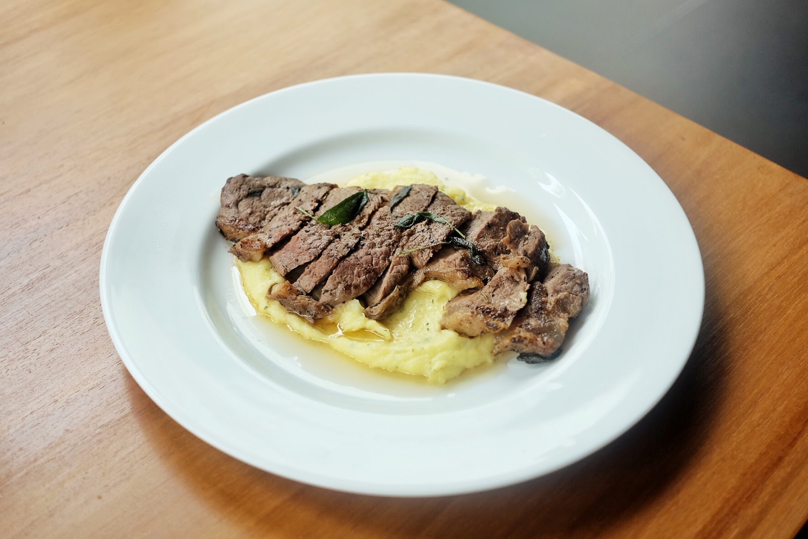 Saya menyukai daging sapi yang wangi. Ini bukan hal yang umum untuk menemukan steak yang disajikan dalam sebuah kedai kopi, apalagi salah satu yang baik tapi sayau benar-benar menyukai daging sapi mereka. Dagingnya mengejutkan sangat lembut dan lembab. Dibumbui dengan rosemary dan sage, daging sapi diiris dan disajikan di atas mashes potato yang dimasak dengan baik. Saya selalu suka kentang tumbuk yang kental bukannya halus, dan sajian mereka adalah kental tapi tidak berbutir.