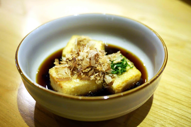 Saya bukan penggemar berat agedashi tofu tetapi yang satu ini lezat! Bagian yang saya suka adalah bagian bawahnya yang kenyal dan sausnya yang asin! Meskipun ini bukan favorit saya, ini memang merupakan menu wajib yang ada di restoran Jepang.
