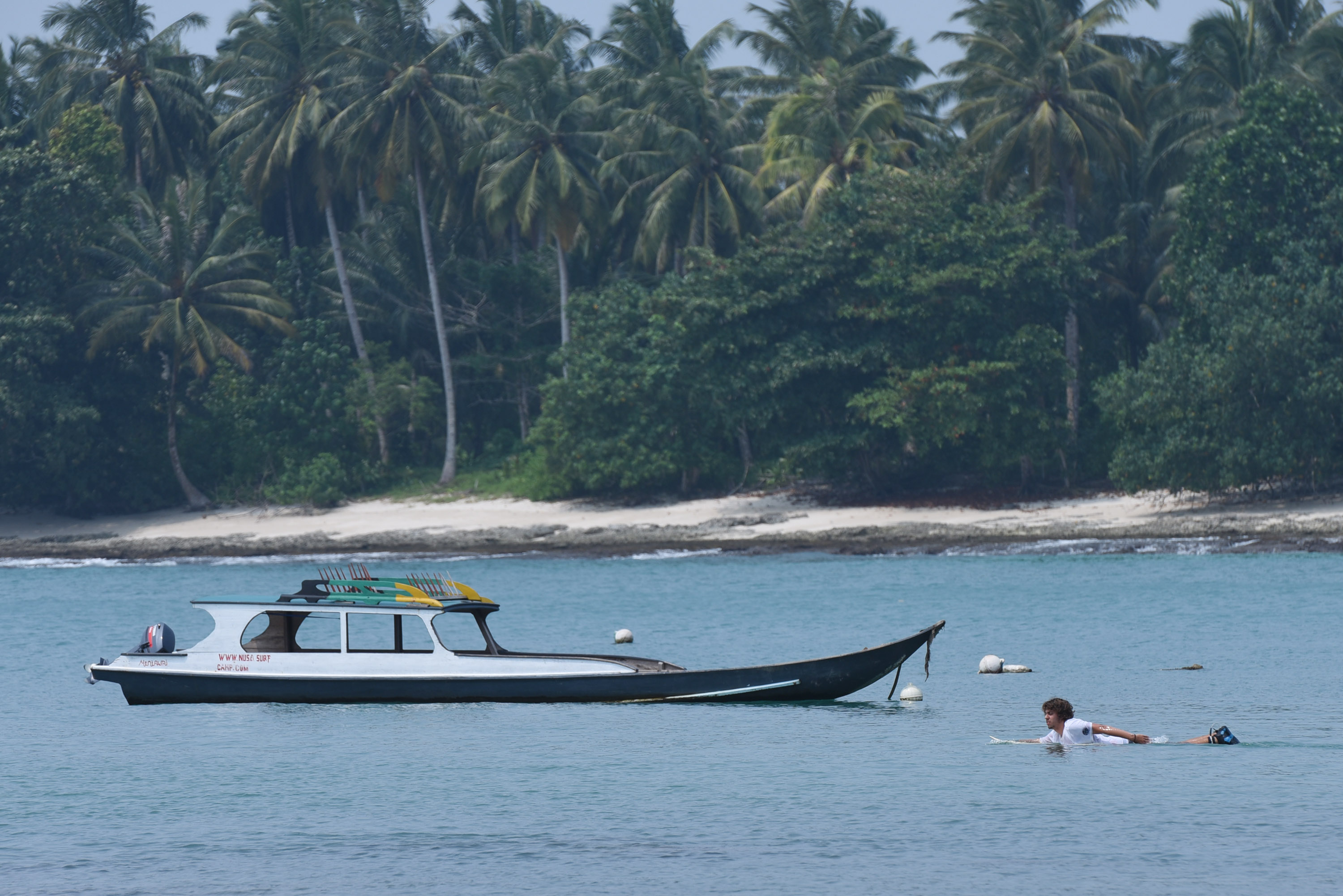 Pemandu wisata membantu wiatawan mengangkat papan selancar di laut Siberut Barat Daya, Kepulauan Mentawai, Sumatera Barat, Minggu (13/9). Ombak di Kepulauan Mentawai merupakan salah satu ombak terbaik di dunia untuk berselancar sehingga menarik minat peselancar internasional. ANTARA FOTO/Hafidz Mubarak A.Perahu untuk mengantar wisatawan asing berselancar bersandar dipantai daerah Peipei, Siberut Barat Daya, Kepulauan Mentawai, Sumatera Barat, Minggu (13/9). Ombak di Kepulauan Mentawai merupakan salah satu ombak terbaik di dunia untuk berselancar sehingga menarik minat peselancar internasional. ANTARA FOTO/Hafidz Mubarak A.