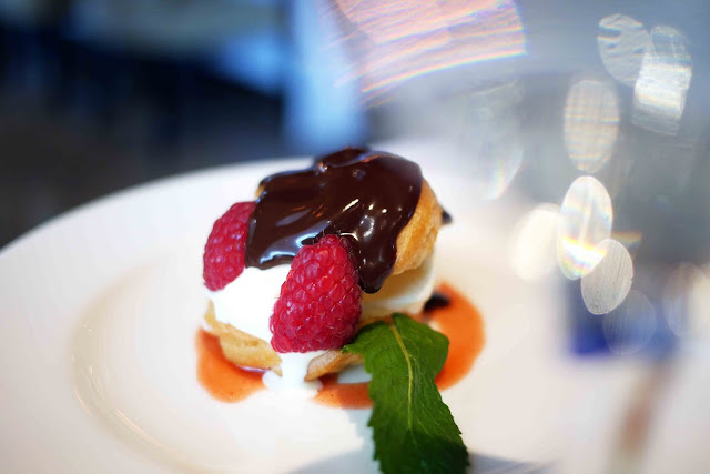 Serius, mereka tahu bagaimana menyenangkan saya! Dessert yang dihidangkan begitu nikmat, bayangkan saja cokelat yang hangat berpadu dengan es krim, ditambah lagi dengan raspberry, dan jangan lupakan choux, tentunya membuat saya ingin kembali kesini sekarang!