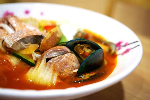 Saya kira ini adalah sup seafood yang pernah begitu populer dengan mie di dalamnya! Sebagai orang Indonesia, saya pikir ini bagian besar, seperti bagian 3 orang besar! Tetapi mereka mengatakan bahwa untuk Korea, ini adalah bagian satu orang ini … wow!