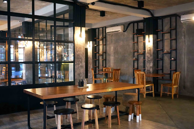 Ini sebelumnya digunakan untuk menjadi warnet, itulah sebabnya memiliki 3 lantai. Lantai pertama hanya memiliki tangga ke lantai dua, di mana The Cortado berlokasi dan lantai ketiga adalah tempat gym. Saya memiliki keraguan ketika saya melihat penampilan luarnya, saya bahkan tidak yakin apakah ini adalah tempatnya jika tidak melihat bunga ucapan selamat besar di depannya. Itu semua berubah saat memasuki tempat ini, karena saya benar-benar kagum setelah itu! Ruang yang besar untuk sebuah kafe di daerah Binus!