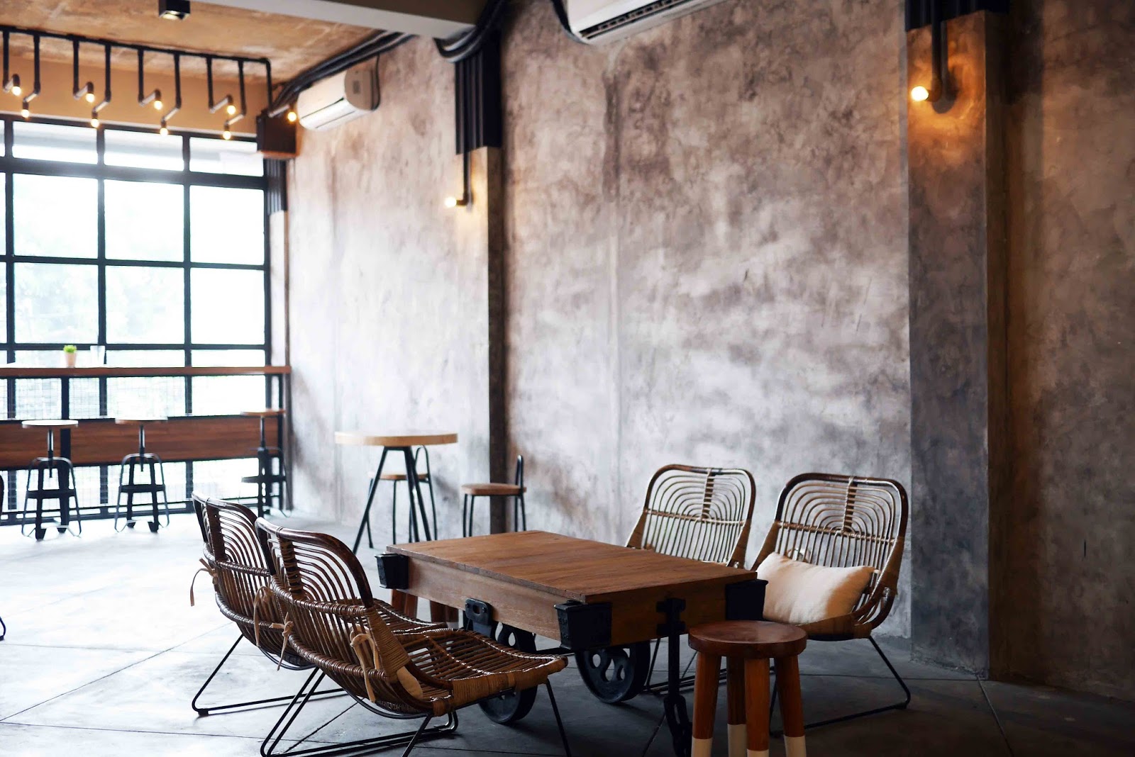 Desain yang tidak biasa, hanya dinding semen sederhana, agak seperti Crematology tapi saya pasti bisa mengabaikamnya. Mereka juga memiliki ruang merokok di sini dan jangan khawatir, ruang ber-AC juga!