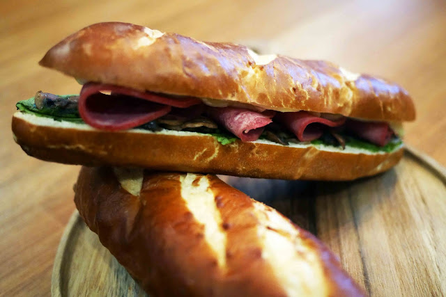 Mereka juga memiliki sandwich yang besar dan lezat, sehingga Anda tidak perlu khawatir bila perut Anda kosong sebelum minum kopi. ebab saya tidak bisa mengkonsumsi kafein saat perut kosong, jadi aku selalu pastikan untuk makan sesuatu sebelum meminumnya. Tapi karena saya tidak bisa hidup tanpa itu, saya hanya harus mencari jalan keluar! Fyi, saya pribadi lebih suka roti ini di bawah disebut Smoked Beef & Brie Pretzel!