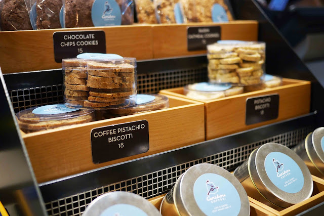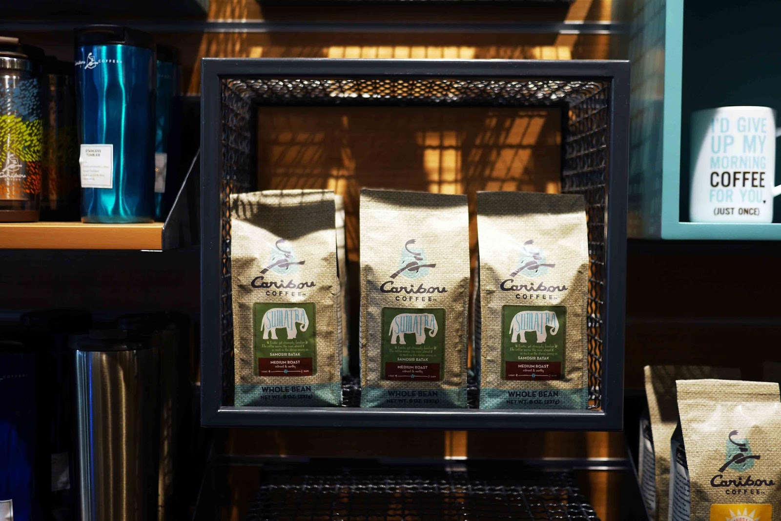 Mereka juga memiliki barang-barang mereka sendiri yang dapat Anda beli, dari biji kopi, cangkir dan gelas. Semua buatan Caribou!