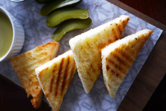 Ketika saya mendengar nama itu, saya pasti tidak mengharapkan diri saya bahkan seperti ini. Ternyata, saya menyukainya! Itu camilan yang sangat bagus dengan rasa seimbang! Ada yang savoriness pate, yang mengejutkan saya, karena saya biasanya tidak suka organ thingy, dikombinasikan dengan selai Ara manis dan acar tajam, semua itu dimakan dengan dipanggang..perfect!