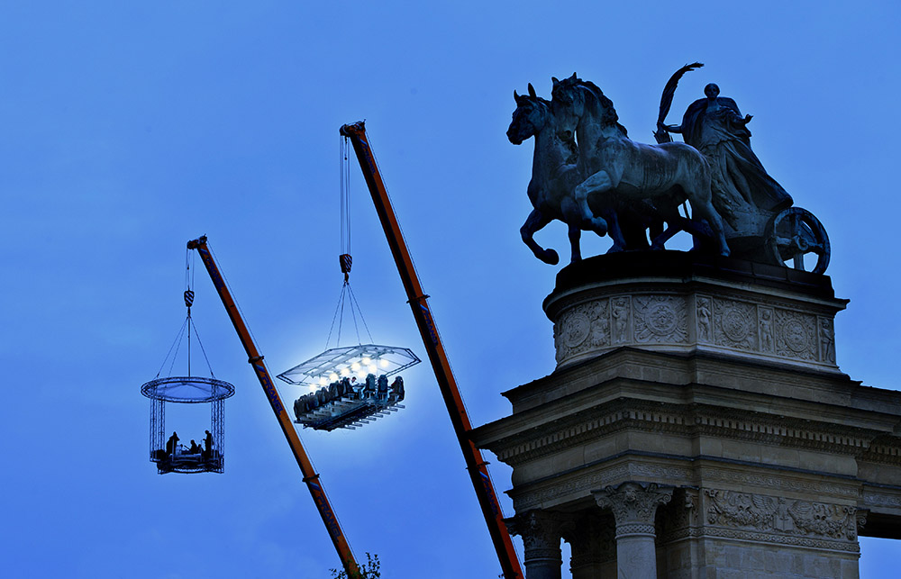 Ide ini diluncurkan pertama kali oleh David Ghysels pada tahun 2004. David Ghysels adalah pendiri Hakuna Matata, sebuah agen pemasaran yang berbasis di Brussels. Pada waktu itu ia berjanji kepada kliennya untuk menciptakan buzz dengan pementasan peristiwa yang tidak biasa. Maka lahirlah ide makan malam di udara, demikian seperti dilansir oleh situs resminya. Ide ini sangat disukai oleh sang klien namun tidak mampu untuk direalisasikan. David merasa ide ini sangat sayang untuk dibuang karena itu ia pun bekerja sama dengan Stefan Kerkhof yang telah bertumbuh pada bisnis crane pada perusahaan konstruksi milik orang tuanya. Pada waktu itu Stefan telah memulai perusahaan entertaiment yang menawarkan acara-acara bungee jumps.