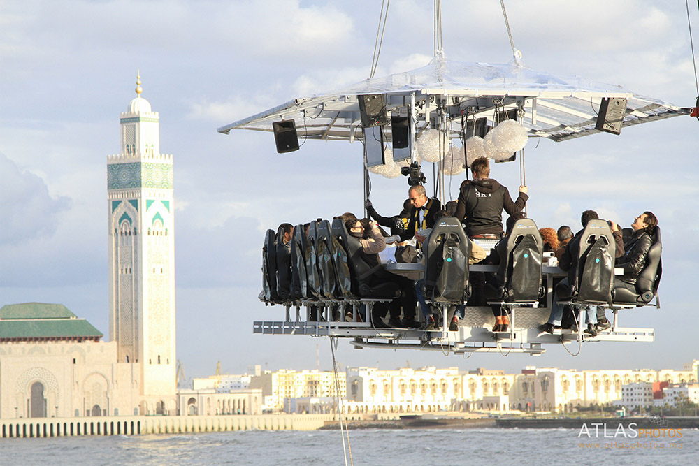 Setelah semua dapat duduk dengan nyaman duduk, maka area meja yang berkanopi pun mulai dinaikkan hingga mencapai 50 meter. Para koki terus melanjutkan untuk menyelesaikan hidangan di depan para tamu. Acara bersantap di langit ini akan berlangsung selama 40 hingga 60 menit tergantung kesepakatan di awal.