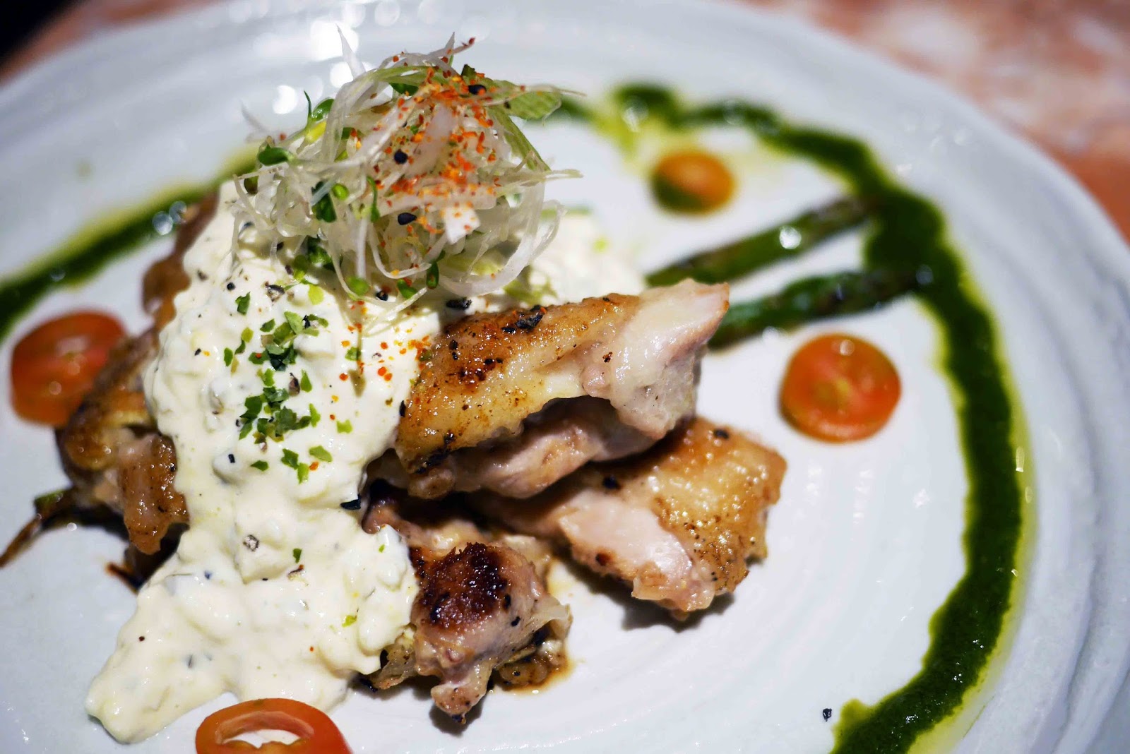 Sweet and sour marinated chicken with Japanese tartar sauce.