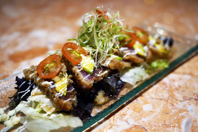 Bahkan hidangan pembuka sudah luar biasa! Bagian luar yang renyah dan bagian dalamnya mentah dengan saus yang enak dan meskipun ada alpukat, saya benar-benar tidak keberatan sehingga semuanya ada dalam keseimbangan yang sempurna! Besar keinginan saya untuk datang ke sini lagi. Semuanya segar dengan sayuran hijau dan saus tataki. Saya benar-benar merekomendasikan Anda untuk datang ke sini.