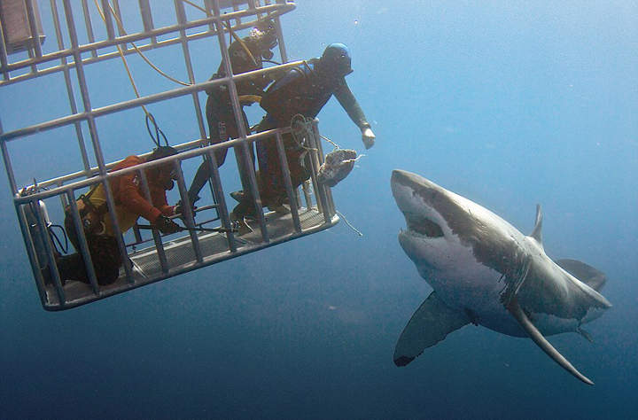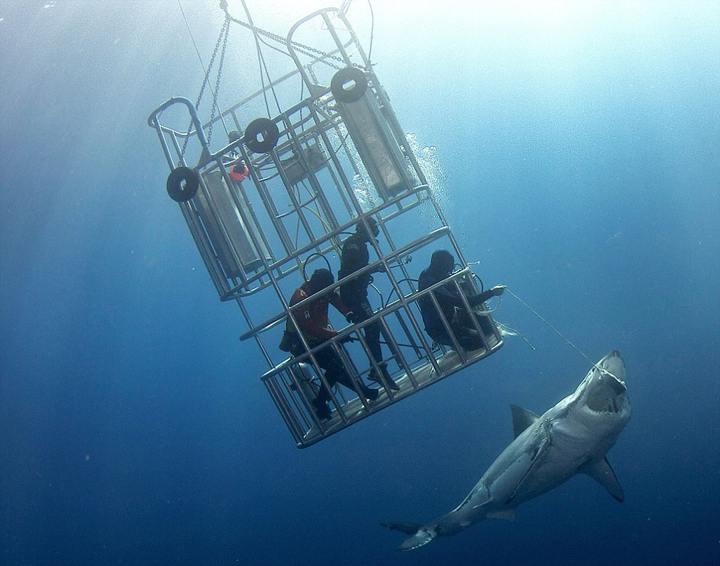 Dmitry Vasyanovich (47 tahun), seorang penyelam asal Moskow memposting fotonya di Facebook. Foto tersebut diambilnya saat ia menyelam di Guadalupe Island, di lepas semenanjung Baja. Tempat ini memang populer bagi para penyelam yang mengikuti Guadalupe Great White Sharks untuk dapat melakukan penyelaman yang demikian menantang, yaitu ketika mereka menyelam dengan menggunakan kandang besi sehingga dapat melihat hewan-hewan liar yang berkeliaran di bawah laut.