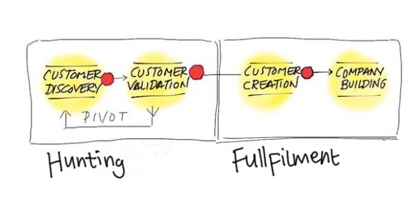 Jawabannya adalah pakai model customer development, ini adalah jantungnya bisnis startup. Dalam model customer development, setiap langkah bisa diulangi karena membutuhkan waktu untuk menemukan pelanggan. Ini adalah cara yang sopan untuk mengatakan bahwa, “Startup belum dapat diprediksi. Kami bisa mengalami kegagalan dan kami bisa beberapa kali gagal dan terus memperbaikinya. “