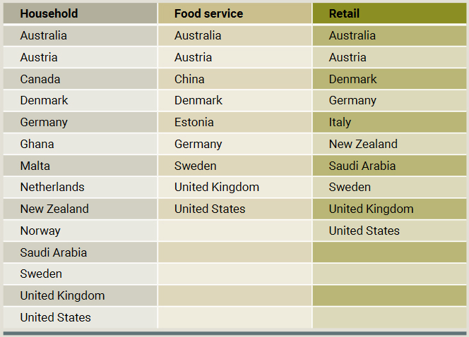 Sedangkan pada tahun 2019, ditemukan 11% dari semua makanan yang dijual kepada konsumen terbuang percuma di rumah, dengan restoran membuang 5% dan toko makanan membuang 2 %.