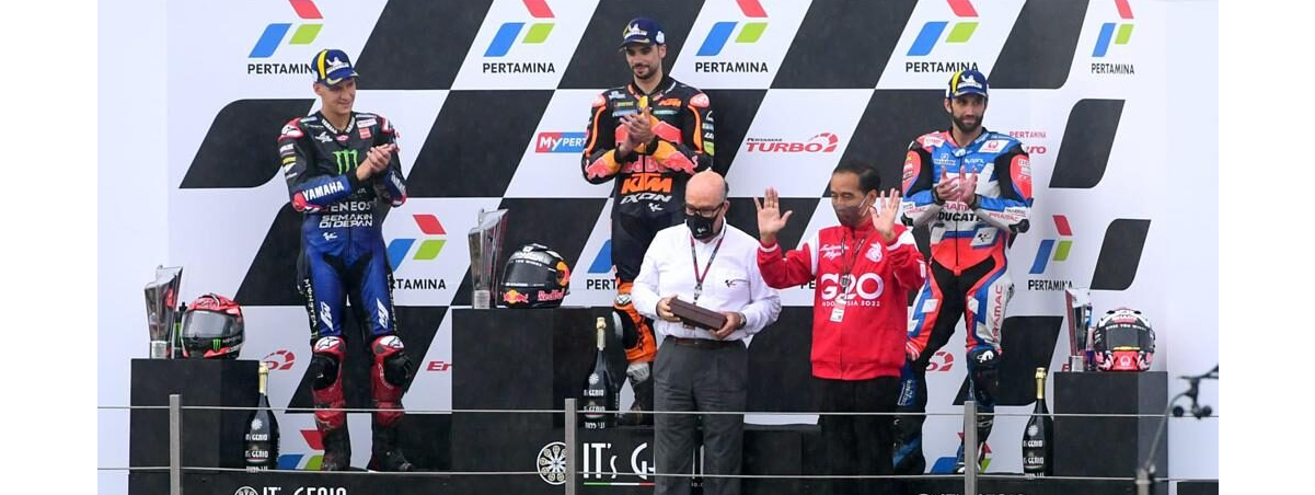 (Bussinesslounge Journal-News) Gelaran MotoGP Mandalika 2022 ini merupakan sebuah ajang olahraga balap motor yang luar biasa, demikian disampaikan oleh Presiden Joko Widodo. Itu sebabnya Presiden berikan apresiasi yang sebesar-besarnya kepada seluruh masyarakat, terutama bagi masyarakat Nusa Tenggara Barat, untuk semua dukungan yang diberikan selama penyelenggaraan ajang balap motor kelas dunia tersebut.