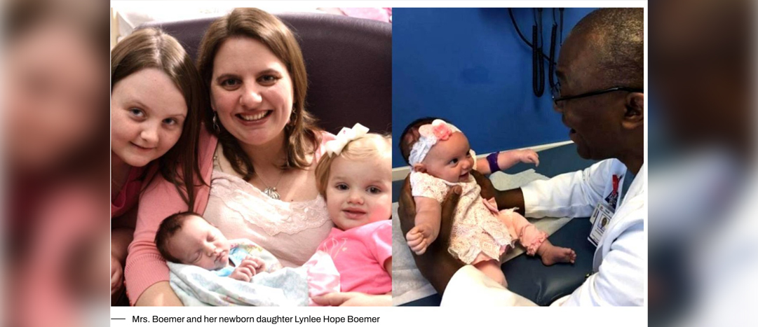 Setelah 13 minggu istirahat di tempat tidur, Boemer melahirkan Lynlee melalui operasi caesar, dan saat bayi berusia delapan hari, dokter bedah mengangkat sisa tumor.