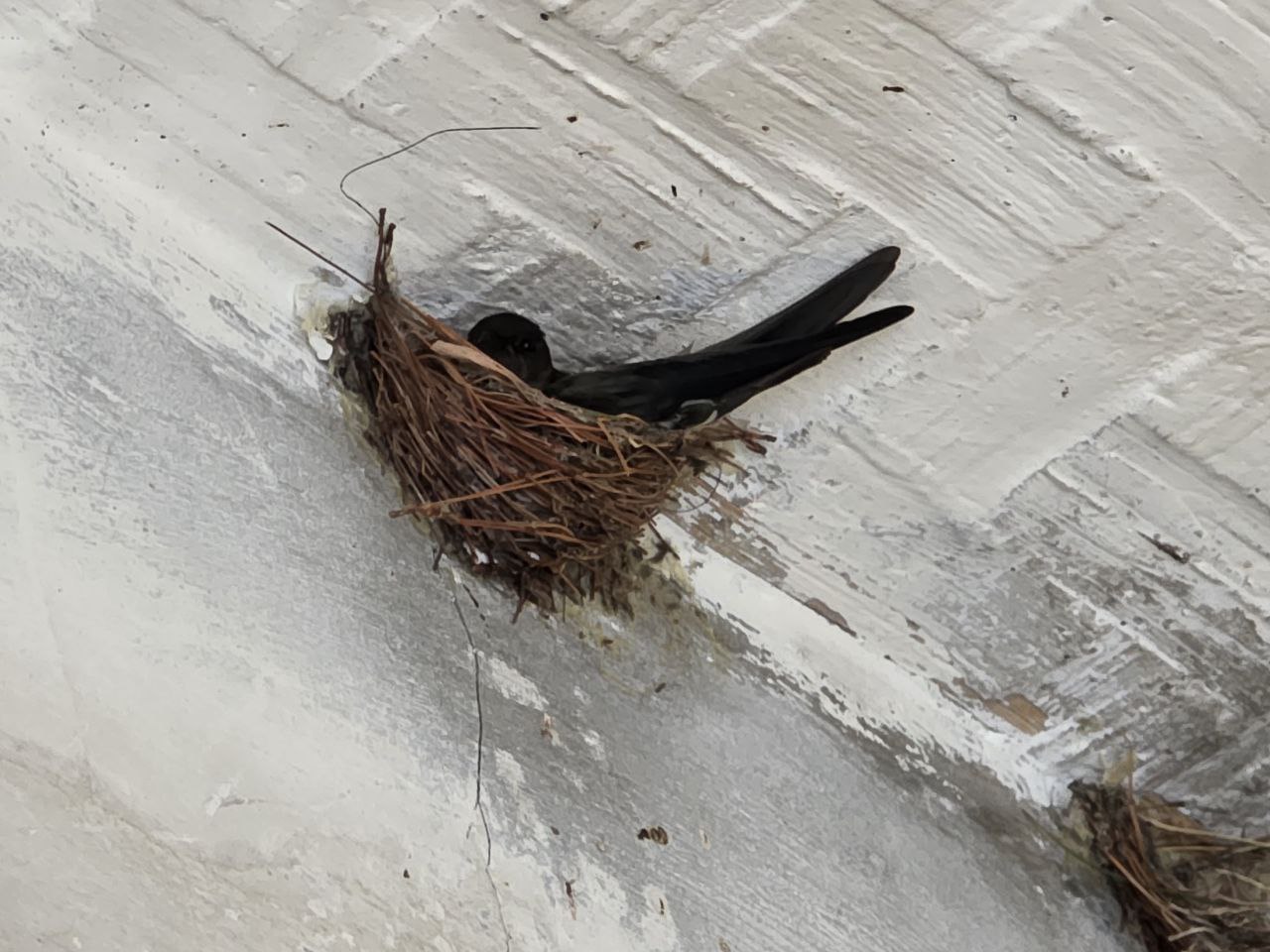 Di sudut dinding yang tenang, seekor burung kecil ini tampak beristirahat di sarangnya yang terbuat dari ranting dan serat kering. Dengan sayapnya yang ramping dan warna gelap berkilau, ia seolah menjaga rumah mungilnya dengan penuh kesabaran. Di balik kesederhanaan sarang itu, tersimpan kehangatan dan harapan akan kehidupan baru yang segera menetas.