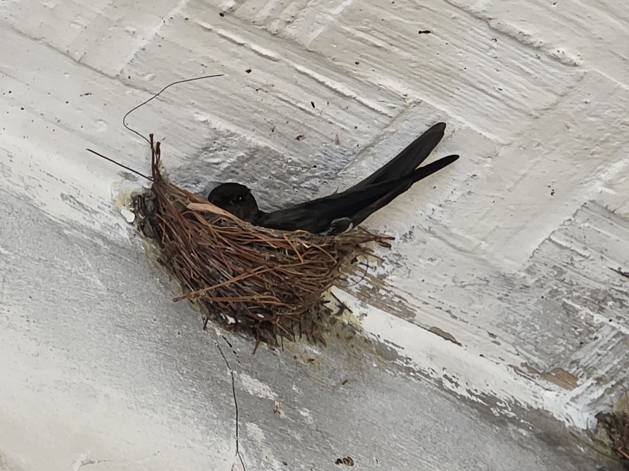 Di sudut dinding yang tenang, seekor burung kecil ini tampak beristirahat di sarangnya yang terbuat dari ranting dan serat kering. Dengan sayapnya yang ramping dan warna gelap berkilau, ia seolah menjaga rumah mungilnya dengan penuh kesabaran. Di balik kesederhanaan sarang itu, tersimpan kehangatan dan harapan akan kehidupan baru yang segera menetas.