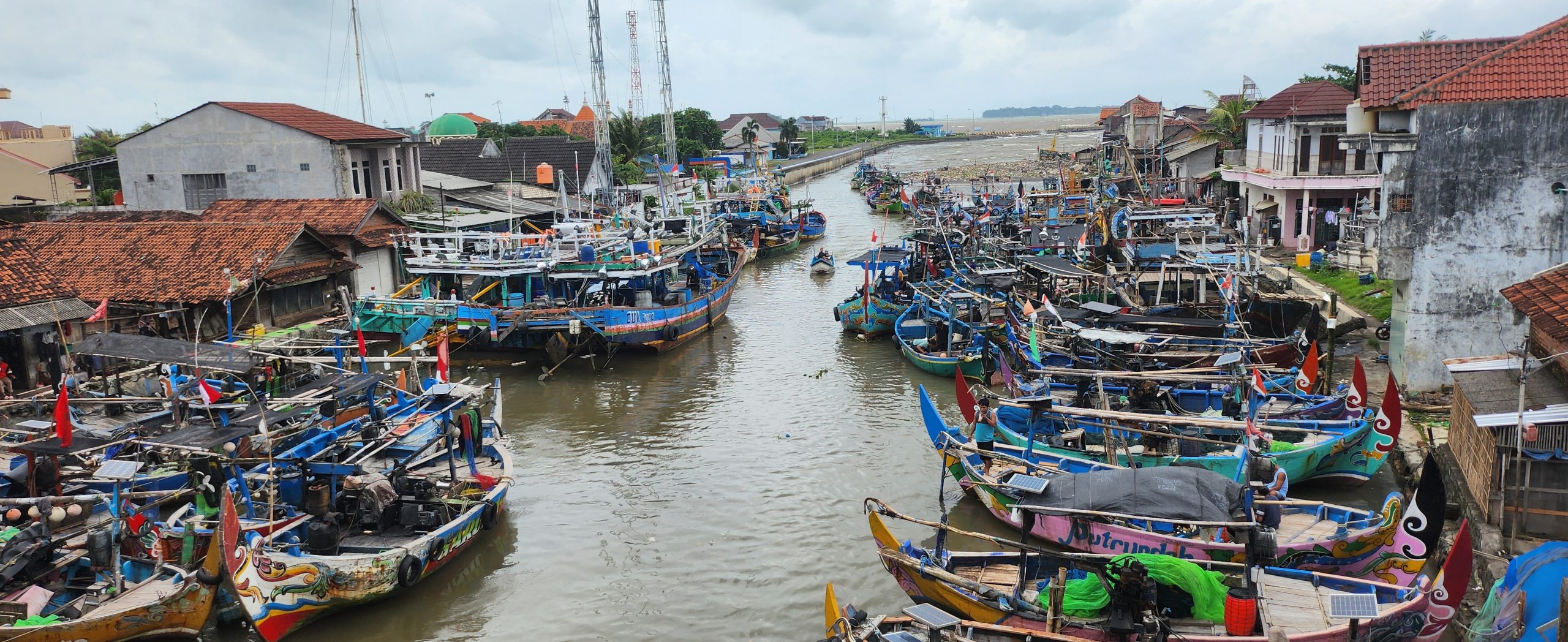 Suasana kampung Nelayan Kampung Jobokuto, sebuah perkampungan nelayan di kota Jepara. Lokasinya tidak berada di pinggir pantai, tapi di sepanjang sebuah sungai. Puluhan atau bahkan ratusan perahu parkir di sepanjang sunga.