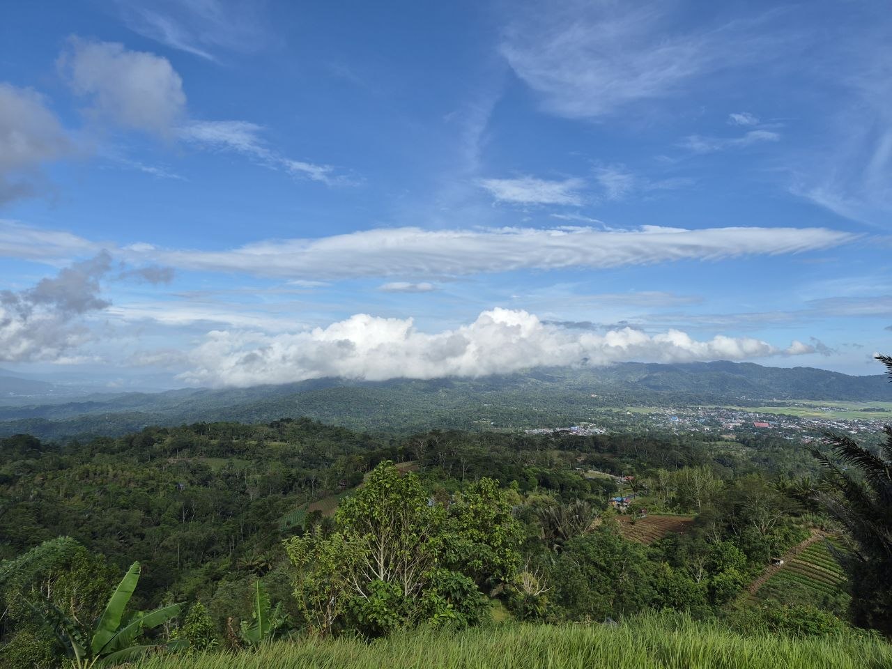 Kawasan Puncak Temboan, dimana kita bisa memandang alam pengunungan, nampak gunung kelabat yang lagi tertutup awan, juga bisa lihat Danau Tondano.