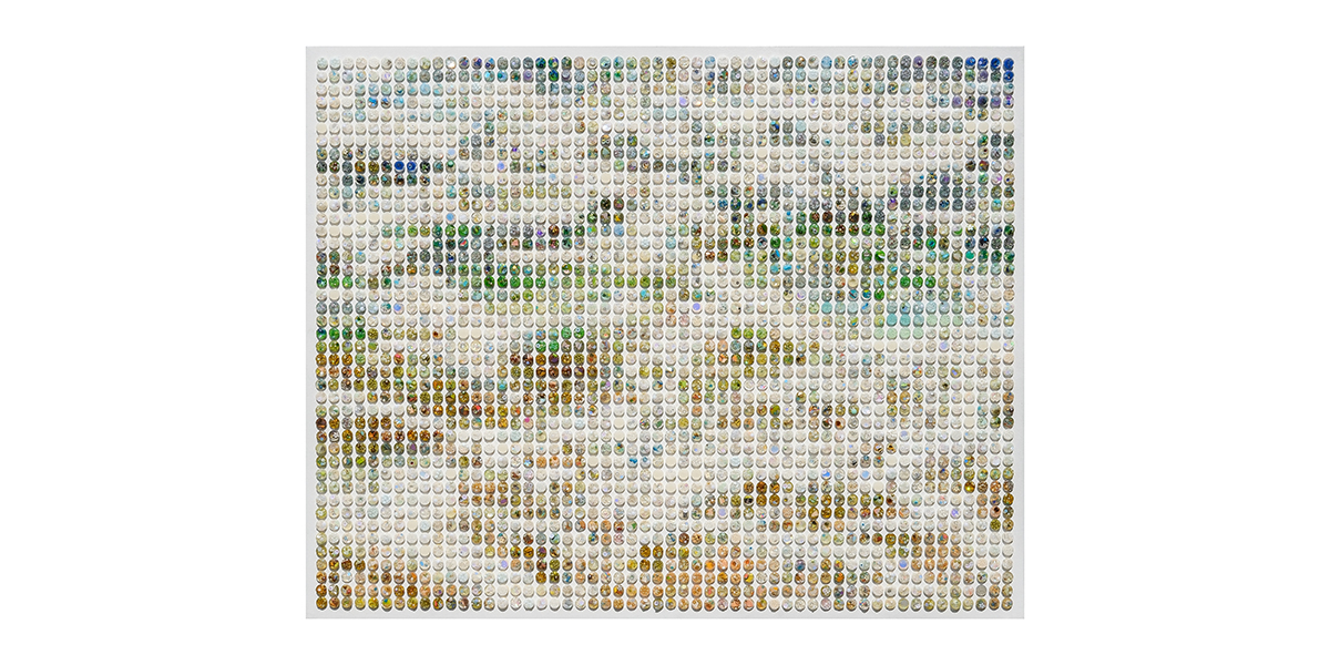 Pendekatan ini menandai pergeseran penting. Lanskap tidak lagi diposisikan sebagai panorama utuh yang dapat “ditangkap” dari kejauhan, melainkan sebagai fragmen-fragmen yang saling terhubung. Dalam karya-karyanya, elemen-elemen kecil disusun dengan presisi hampir seperti piksel—menciptakan ilusi bentuk seperti gunung, laut, atau hutan ketika dilihat dari jauh, namun terurai menjadi bagian-bagian independen saat diamati dari dekat.